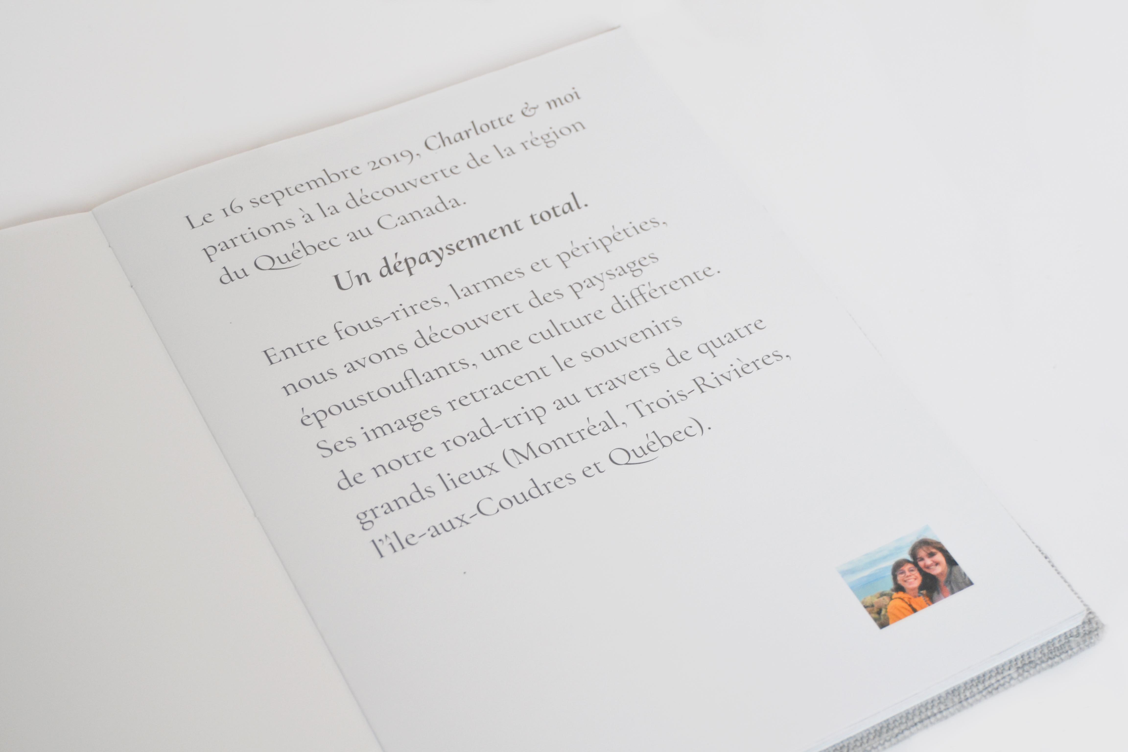 Canada Book est un Livre qui retrace mon road trip au Canada réalisé en septembre 2019. Quand l’air du numérique prend énormément de place sans que l’on ne s'en rende compte, plus de 600 photos réaliser au cours de mes deux semaines de voyages. À travers ce livre, je voulais garder une trace physique palpable, visuelle sans avoir besoin d’un écran pour me souvenir.